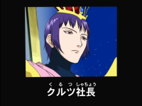 敵の大将のクルツ社長。ちなみに声優の津田健次郎さんは遊戯王デュエルモンスターズで海馬瀬戸を演じておられます。デュエルモンスターズの販売元がセイオクの企画・制作をしているコナミですし、同じ社長というのに何か感じるものがあります。